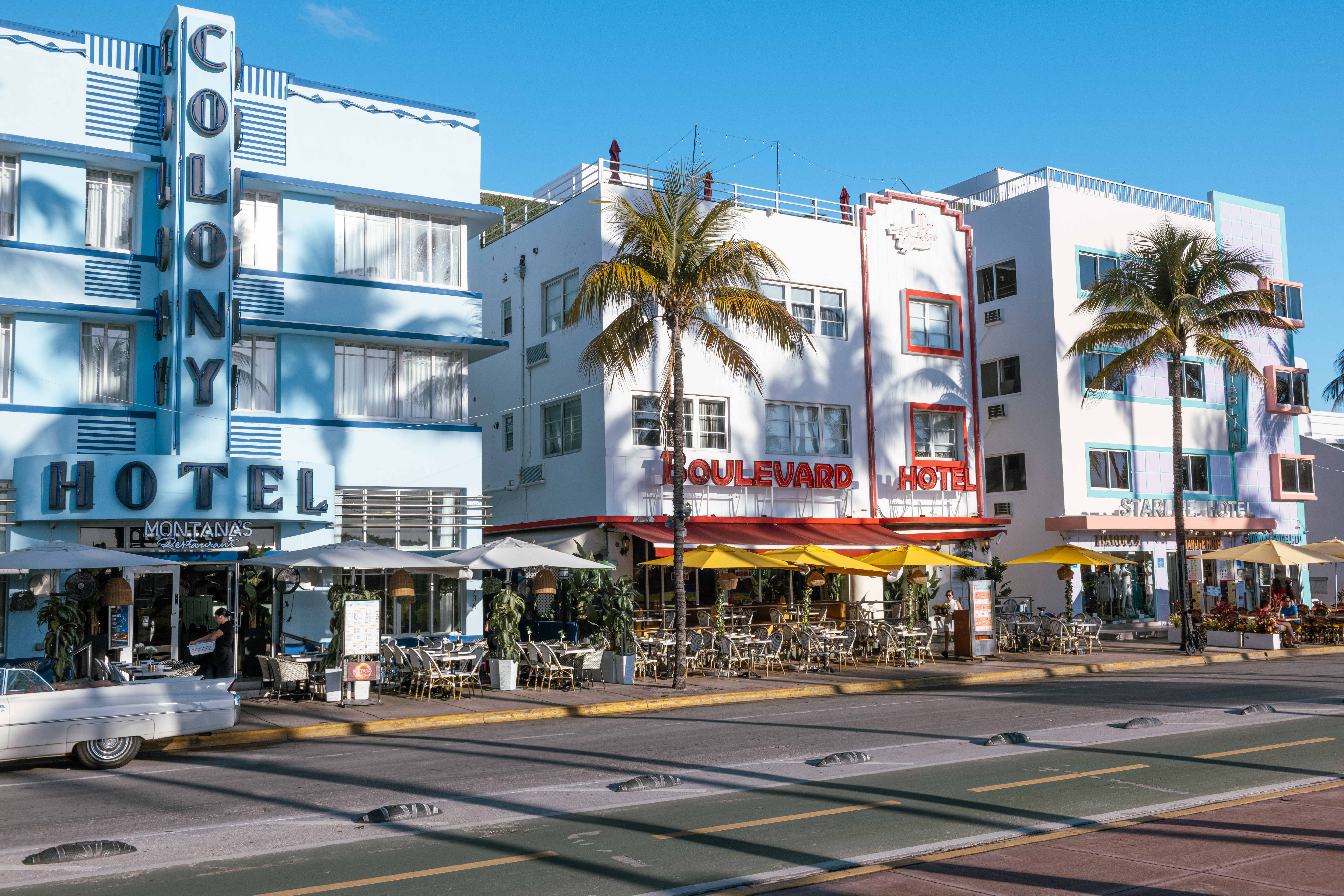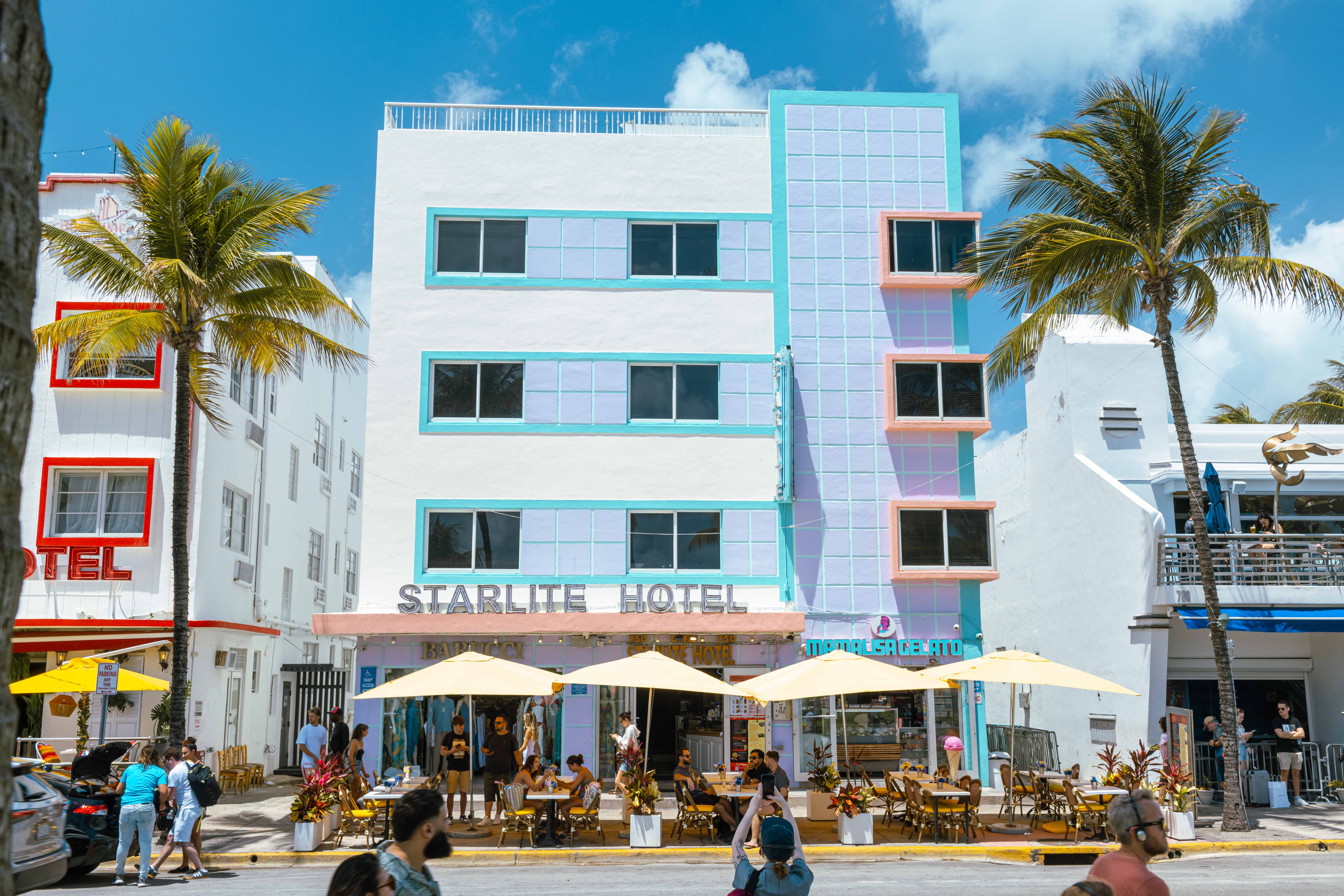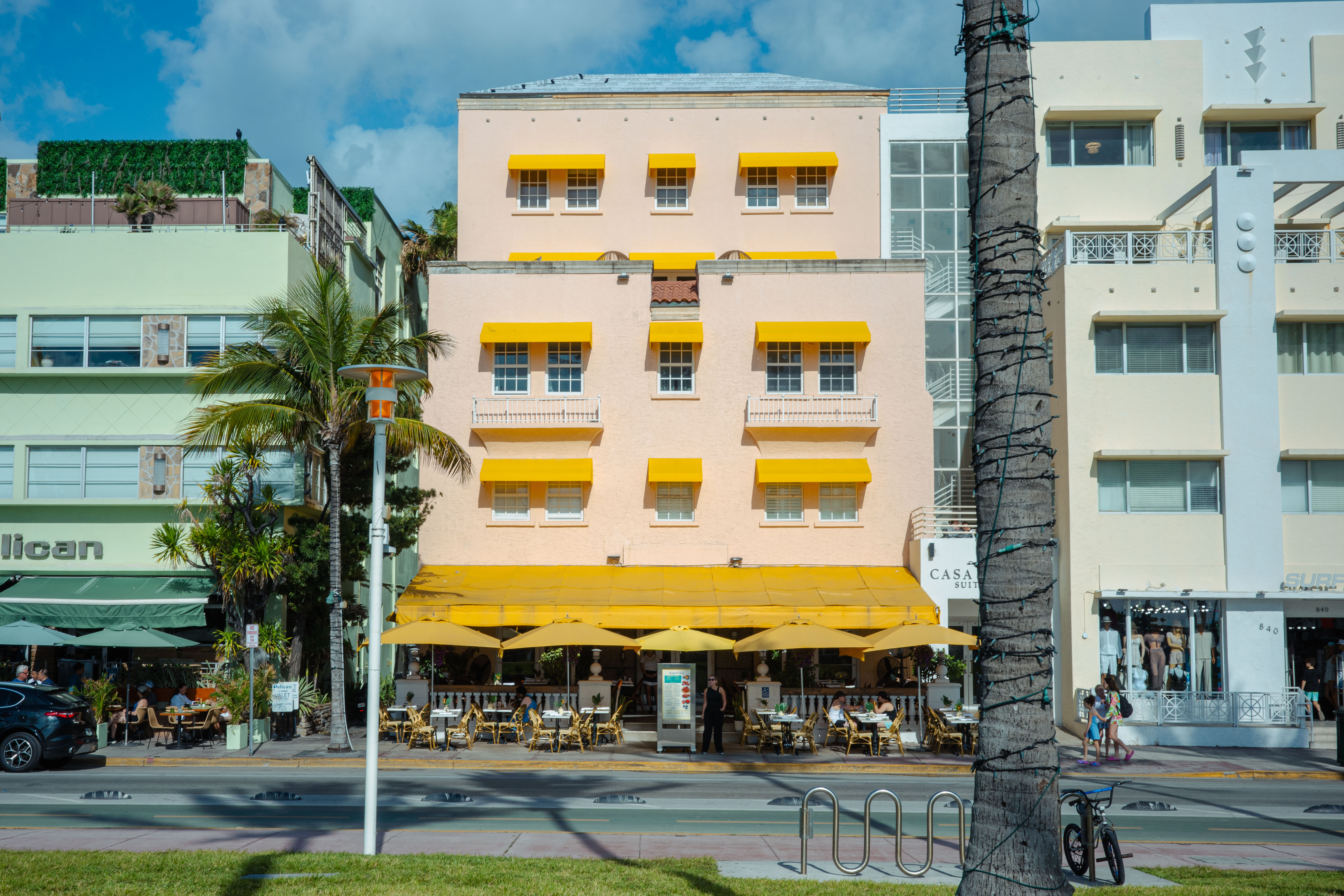 The outwardness shows up in the buildings, too. There’s a stretch of South Beach lined with incredible Art Deco façades. I’m usually drawn to black lines and minimalism—if it were up to me, everything would look like graph paper—so it’s refreshing to have my taste challenged. Art Deco is so cool? The colors and ornamentation are totally wild. Judging by the shapes and patterns, everyone back then seems to have been really excited about automobiles, cruise ships, and… ancient Egypt?