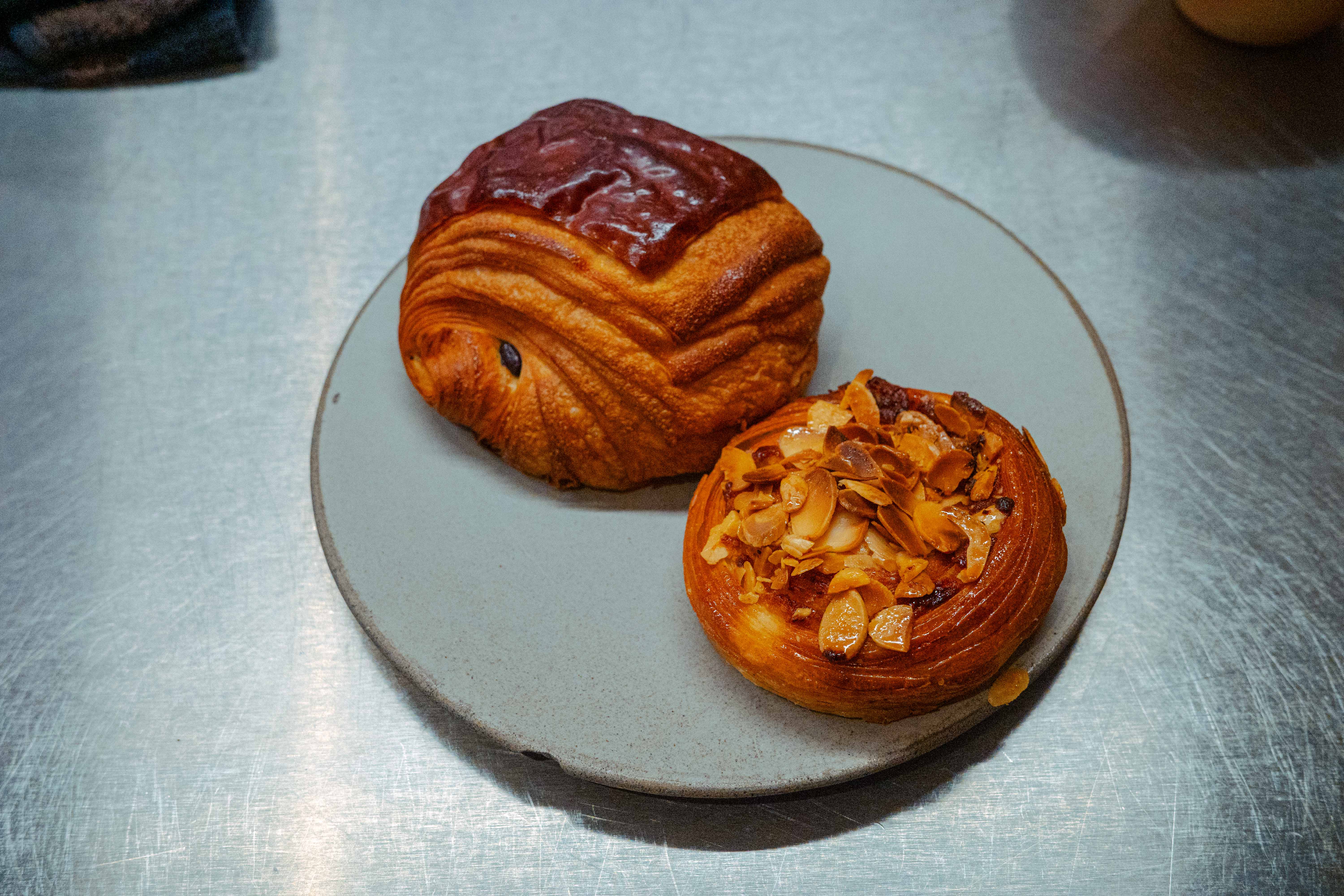 I’m actively caught in the trap of thinking this place rocks. It became popular on TikTok and people have been flocking there based on their algorithm. Me? I just found it in, like, a boots-on-the-ground, walking-down-the-street, oh-what-have-we here kind of way. I get a chocolate croissant and a canelé. The complementarity of the two forms on the plate—the rectangular chocolate croissant, the dark, cylindrical canelé—provokes me to anthropomorphize them, like a famous duo. Timon and Pumba. Chris Tucker and Jackie Chan.